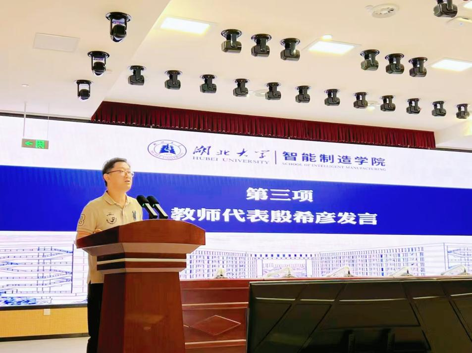 教师代表殷希彦随后发言。他鼓励新生要准备好“硬核”的大脑,以聪慧的头脑迎接知识挑战;同时练就“粗糙”的双手,在实践操作中积累经验。他在分享个人感悟时给予了同学们一些有益的建议,强调学会自我管理比掌握任何知识都关键;在未来规划上,不妨从设定“小目标”开始,循序渐进明确方向。