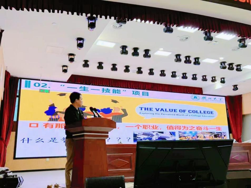学院院长助理李靖为新生详细解读了“一生一技能”人才培养项目方案。他依次介绍学院新工科专业建设发展历程、实验室建设成果及学科方向,强调“一生一技能”项目将以新工科为引领、产业需求为导向,助力学生掌握智能制造行业核心技能。